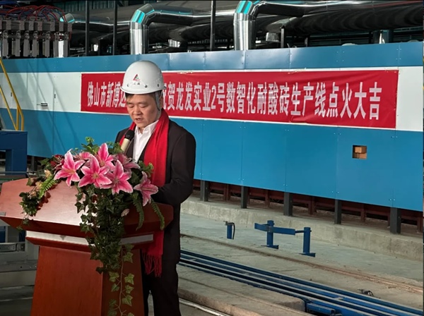 總經(jīng)理羅德平發(fā)表致辭——深刻闡述了本條窯爐生產(chǎn)線(xiàn)的戰略意義與對未來(lái)的展望,指出當前陶瓷行業(yè)正處于轉型升級發(fā)展關(guān)鍵期,面臨行業(yè)內卷、成本攀升、需求多變等挑戰,此條生產(chǎn)線(xiàn)的技術(shù)改造,是公司主動(dòng)求變、主動(dòng)破局的重要舉措。這不僅標志著(zhù)龍發(fā)實(shí)業(yè)在耐酸磚產(chǎn)品生產(chǎn)制造能力上實(shí)現跨越式升級,也標志著(zhù)公司在智能制造、數字生產(chǎn)方面再次邁出了堅定的步伐,為未來(lái)的高質(zhì)量發(fā)展奠定了堅實(shí)基礎。